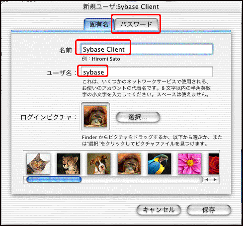 - "名前"は,MacOS Xにログインするときに表示され識別されるID.
