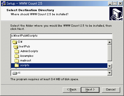 - ここでは,C:\inetpub\scriptsを指定している.