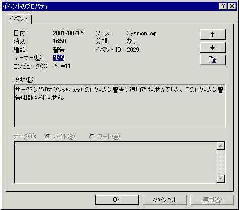 - [サービス]の"Performance Logs and Alerts"を開いてみると,次のようになっている.