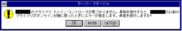 - この時,PDCがダウンしている場合には,次のようなダイアログが表示される.