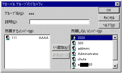 d:\toNT>net group aaa 111 /add コマンドは正常に終了しました。 |