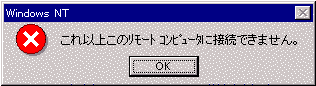 | 製品 Windows NT Server はライセンス外です。 ライセンスに準拠していないユーザーと不足しているライセンス数について詳しくは、[管理ツール] フォルダの [ライセンス マネージャ] を使ってください。 |