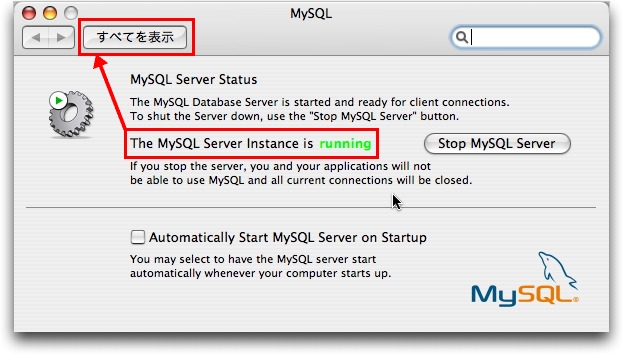 - システム環境設定でMySQLをコントロール(起動・停止)する為のモジュールをインストールする.