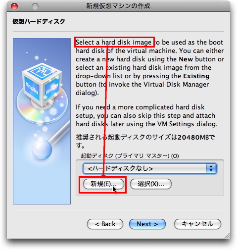 - 仮想マシンを作成する為に,新規ボタンを押す.