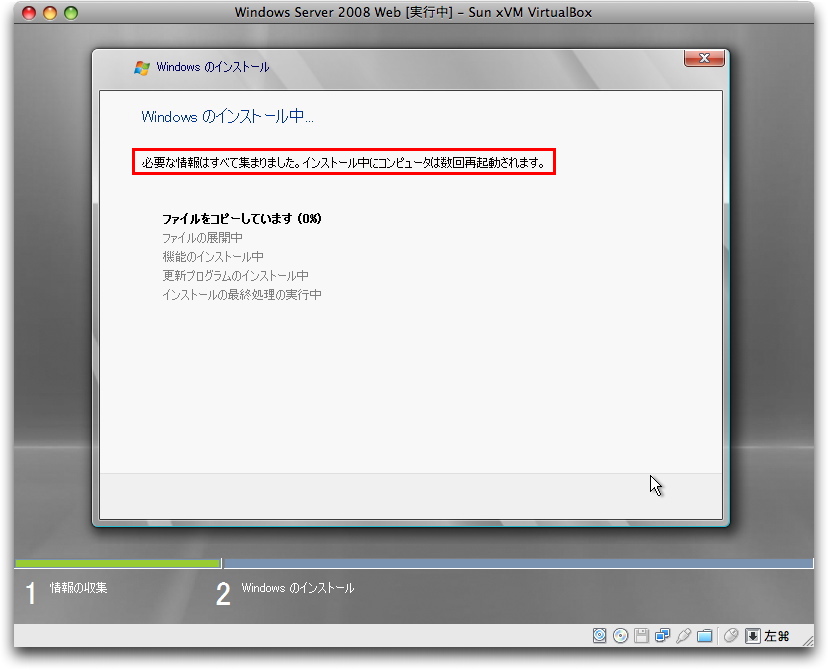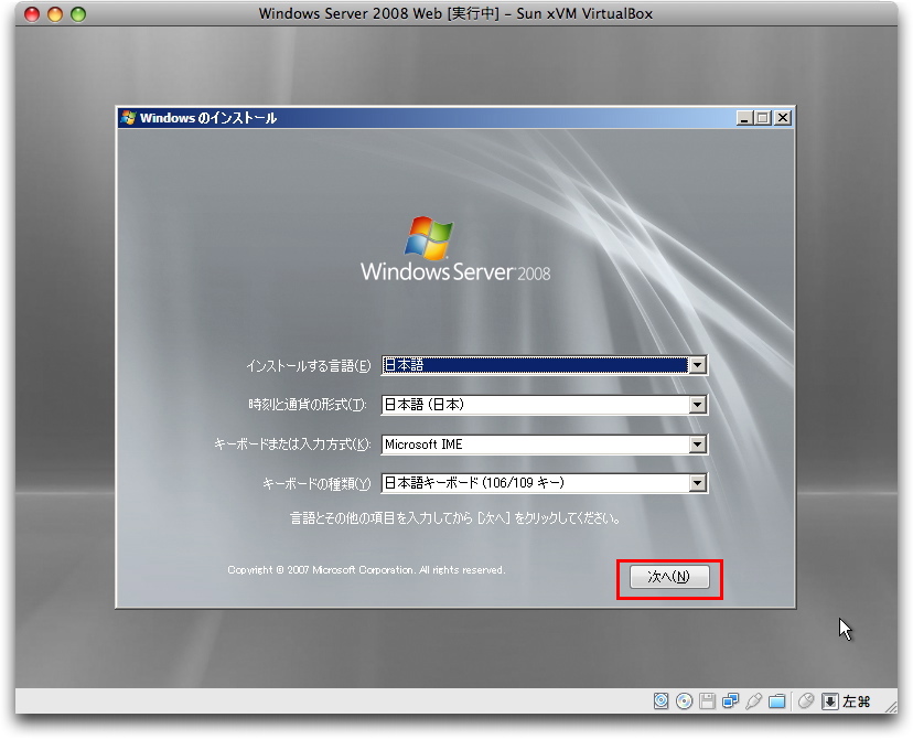 VirtualBox2.0で仮想マシンを作成する(Windows 2008)
