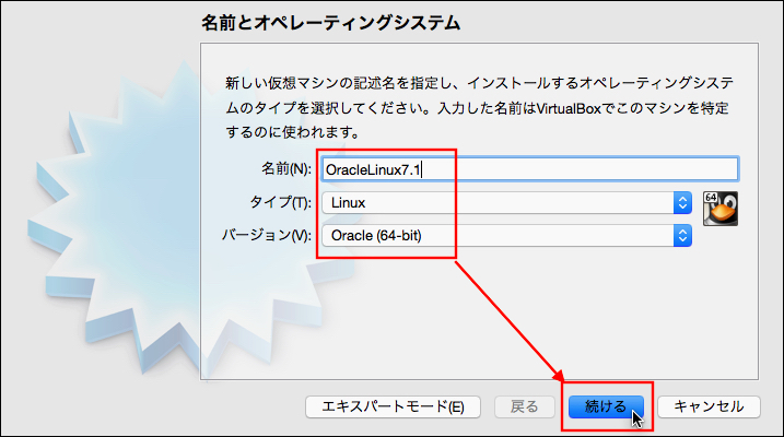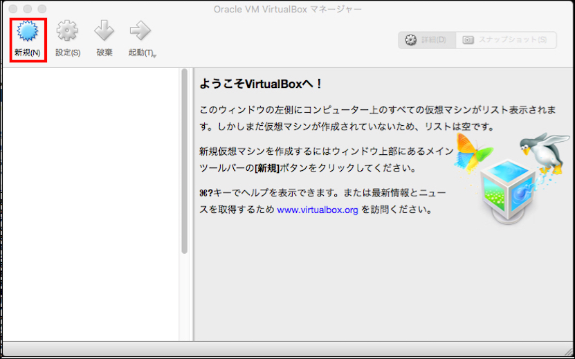 VirtualBox上に仮想マシンを定義する.