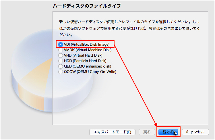 VDI形式で.(VirtualBoxなのでこれで良いかと)