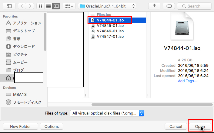 ダウンロードしたISOイメージを選択.