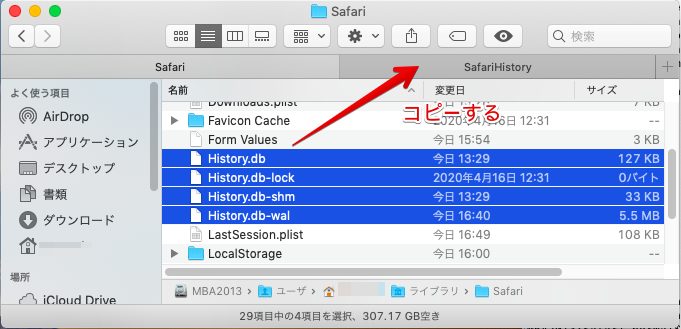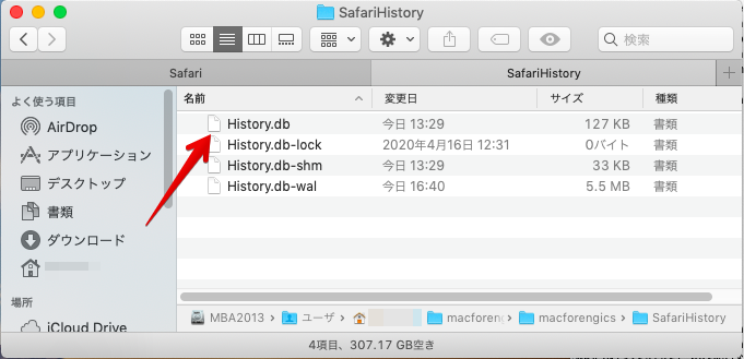 Safariの履歴はSQLite3データベース形式で保存されており,各ユーザのLibraryディレクトリ配下に設置されている.
