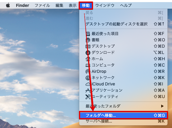 まずは,Finder上で,フォルダに移動する.